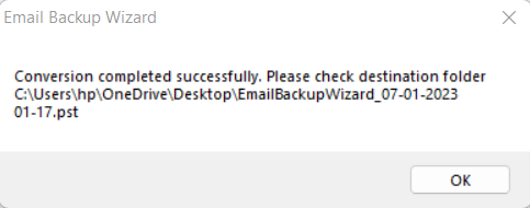 现在,备份 Zimbra 桌面电子邮件的过程正在软件中运行。需要一些时间才能完成。完成后,应用程序将给出完成消息。