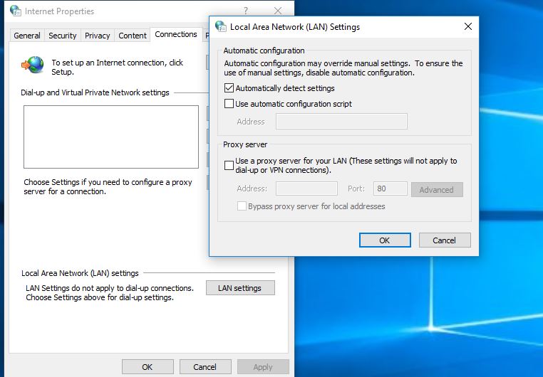 代理服务器是一种中间服务器,充当计算机的本地网络与大型网络(例如 Internet)上的另一台服务器之间的网关。您应该将浏览器设置为自动检测代理或根本不使用代理,以避免连接到互联网时出现问题。