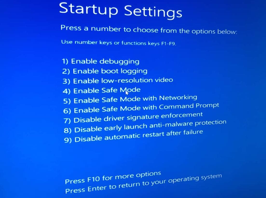 - PC重新启动后,按F4键进入安全模式或F5键通过网络进行安全模式。