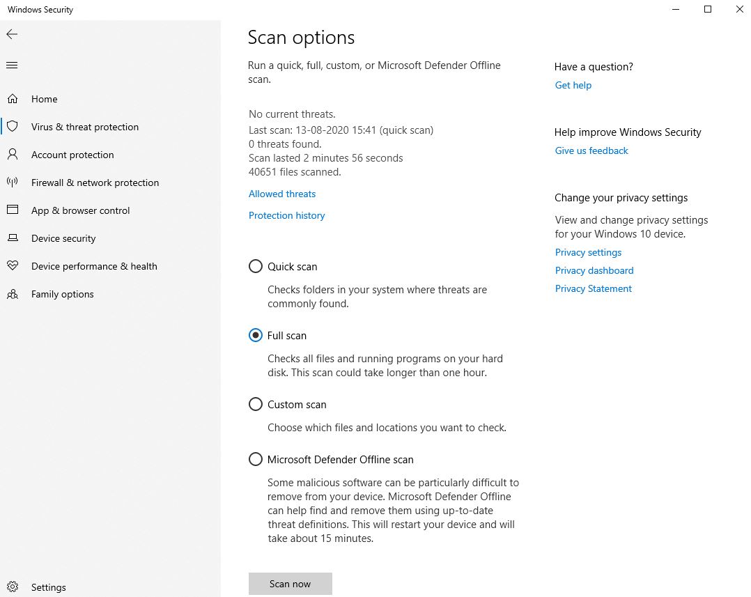 此外,您可能更喜欢第三方防病毒软件进行深入扫描。