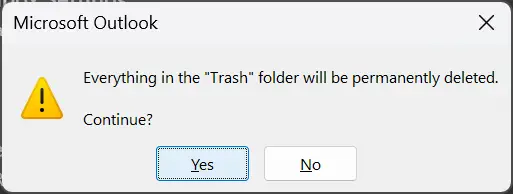 - 所选文件夹中的所有内容都将被永久删除,单击“是的”继续。