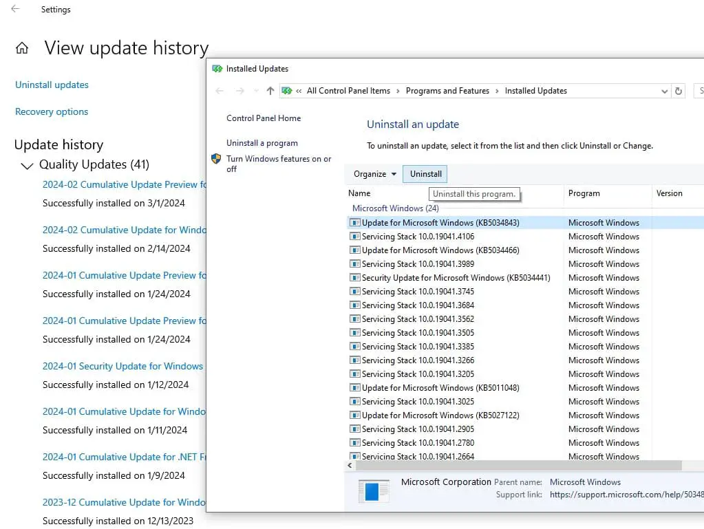 大多数情况下,删除有问题的更新并检查 Windows 更新是否有助于解决问题。