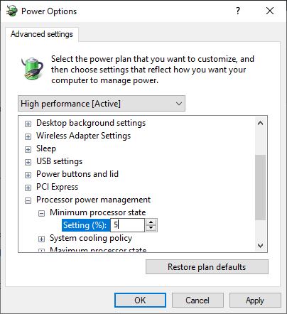 - 双击处理器电源管理,然后双击最低处理器状态。