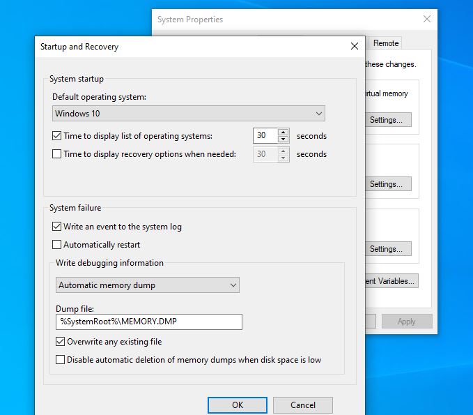 - 转到高级选项卡,然后单击启动和恢复下的设置,