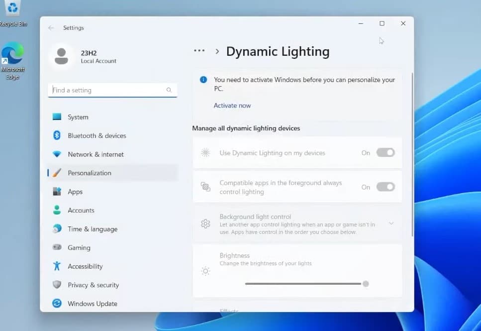 另外,还有一个新的动态照明功能这将允许游戏玩家使用自定义主题和灯光来定制他们的配件和外围设备。在最新的 Windows 11 版本 23H2 中,“设置”应用程序中的新“动态照明”页面旨在简化所连接外围设备的 RGB 照明效果的管理。