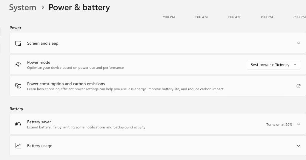 此外,您可以调整 Windows 11 笔记本电脑上的睡眠设置以减少电池使用。调整系统关闭显示屏并使其进入睡眠模式的时间。