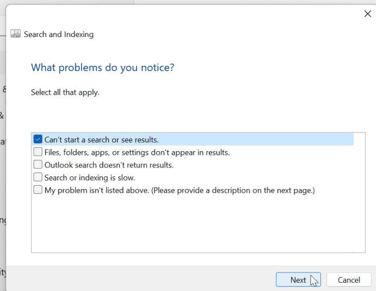 - 该工具现在将查找导致 Windows 工作搜索功能出现技术问题的问题并进行修复。