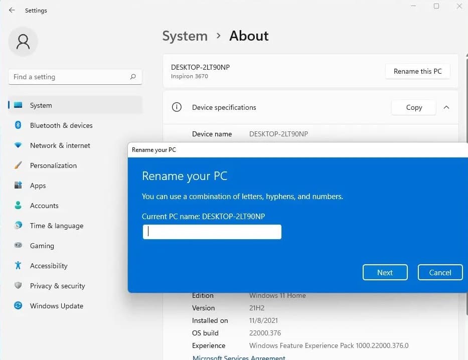 - 最后,输入计算机的新名称,单击“下一步”,然后重新启动电脑以在 Windows 11 上应用新名称。