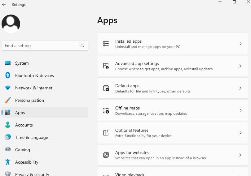 - 单击左侧边栏中的“应用程序”,然后从窗格右侧选择“可选功能”选项,