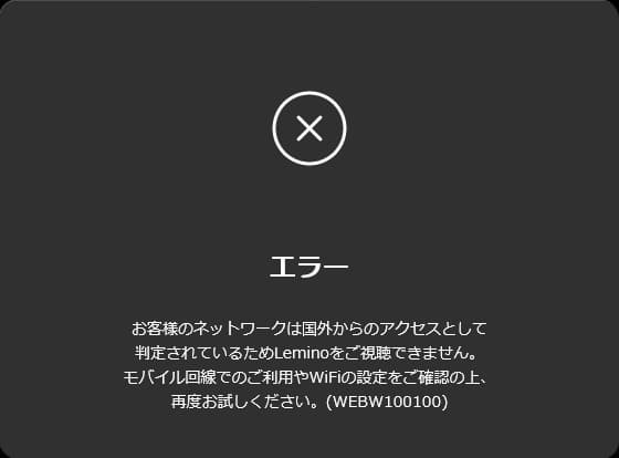 “您的网络被认为是从海外访问的,因此您无法观看Lemino。请在重新尝试之前检查您的移动连接和WiFi设置。(WebWW100100)”