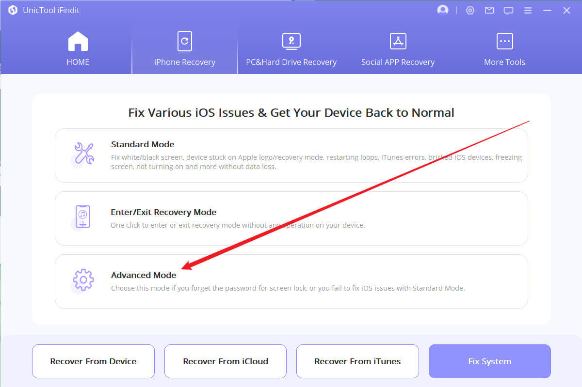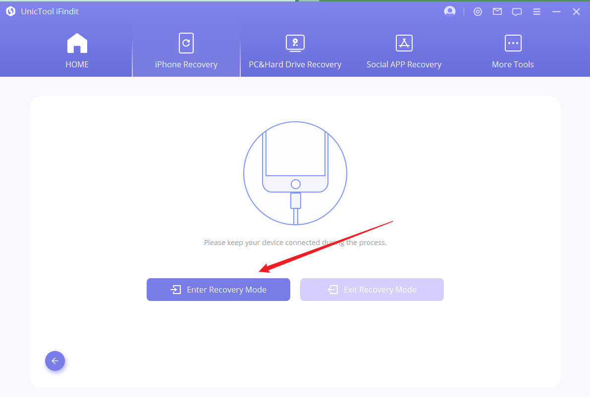 如果您正在尋找一種更簡單的方法讓 iPhone 進入恢復模式,您可以使用 iFindit 來幫助您,這個功能完全可以幫助您。自由的。請按照以下簡單步驟來使用此功能。