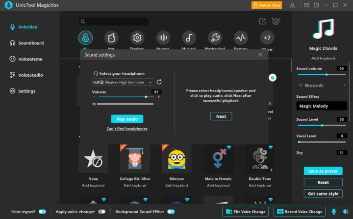 應啟動 UnicTool MagicVox,並選擇主麥克風作為輸入設備。