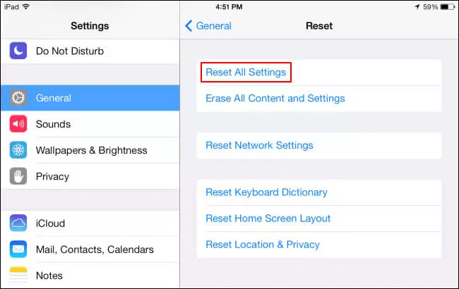 重置所有設置可以幫助解決由軟件錯誤引起的問題。要重置所有設置,請轉到“設置”應用程序,點擊“常規”,然後點擊重置。點擊重置所有設置,並在提示時輸入密碼。