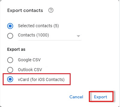 如果您想避免一個接一個地導出聯繫人,則Google聯繫人可以為您提供幫助。它可以有效地將大量的Outlook聯繫人轉移到VCF文件。要了解如何,只需按照以下步驟: