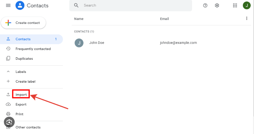 - 3在Google聯繫人中,單擊“進口”左側欄。
