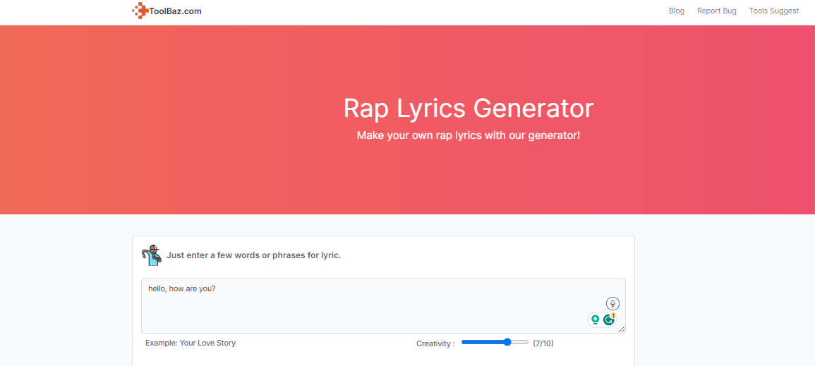 AI 說唱歌詞生成器是一種特殊的 AI 工具,用於創建說唱歌詞。這個人工智能可以為你提供可以使用的說唱歌詞,或者幫助你想出新的歌詞。它就像製作說唱歌曲的創意幫手。它可以押韻、玩文字遊戲,甚至可以為你提供關於說唱內容的想法。