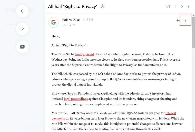 - 打開電子郵件您要下載並選擇3 點圖標。