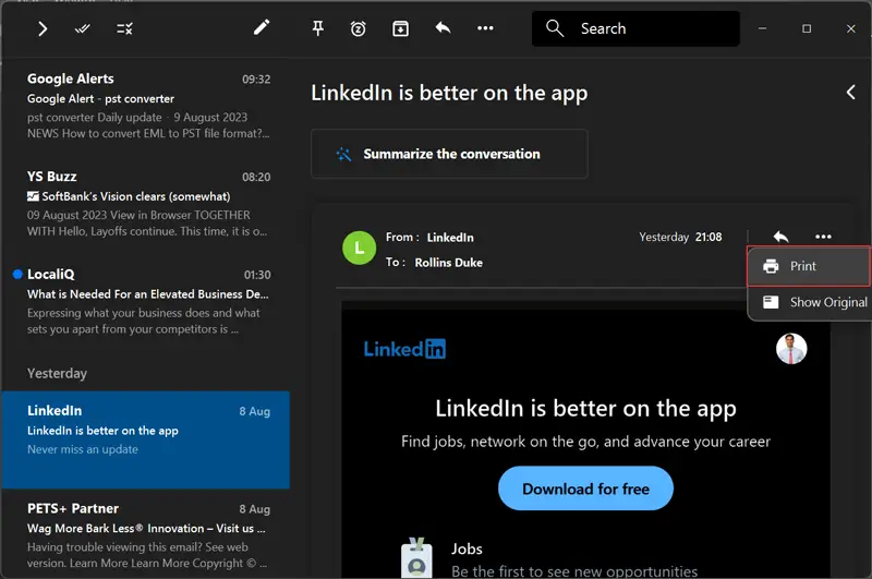 - 重複同樣的步驟再次下載另一封電子郵件。