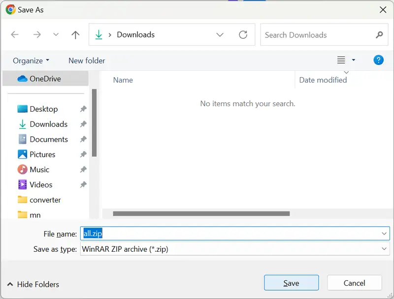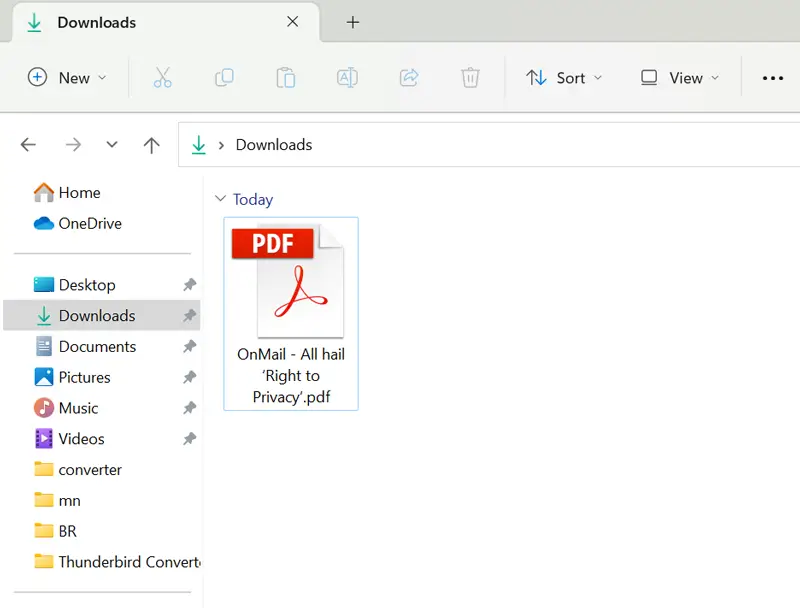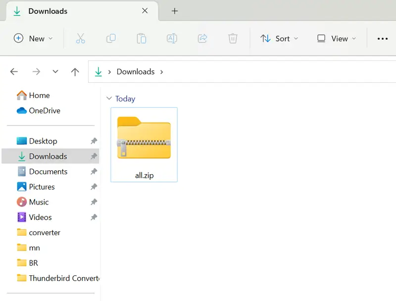 - 轉到目標路徑並查看您的 OnMail 數據是以 ZIP 文件形式下載。