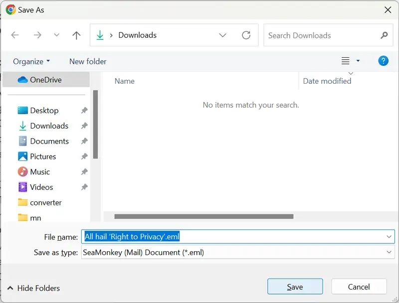 - 選擇所需的 OnMail 文件夾並選擇一個保存選項。