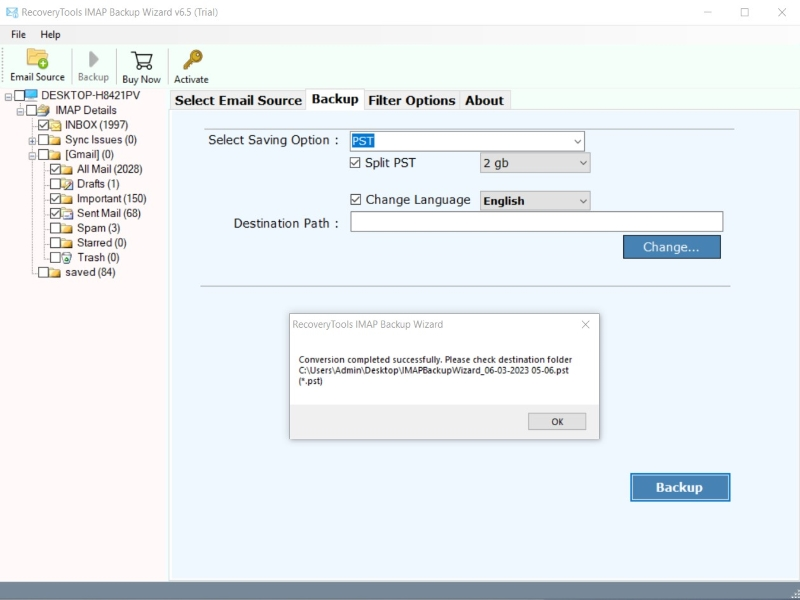 - 設置目標路徑存儲 OnMail 導出的電子郵件。