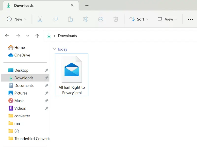- 前往目的地位置並獲取 OnMail 導出的 EML 文件。