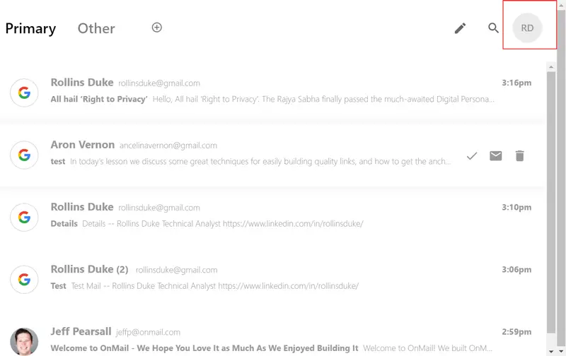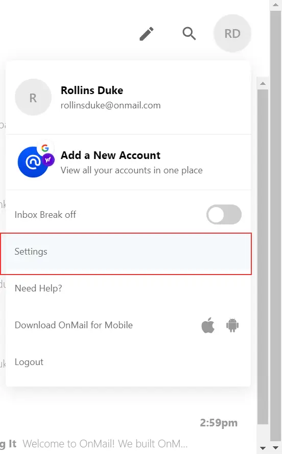 - 登錄您的 OnMail 帳戶並單擊個人資料圖片。