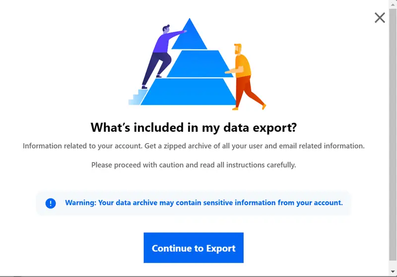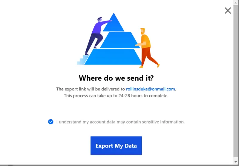- 啟用“我了解我的帳戶數據可能包含敏感信息”框並選擇導出我的數據。