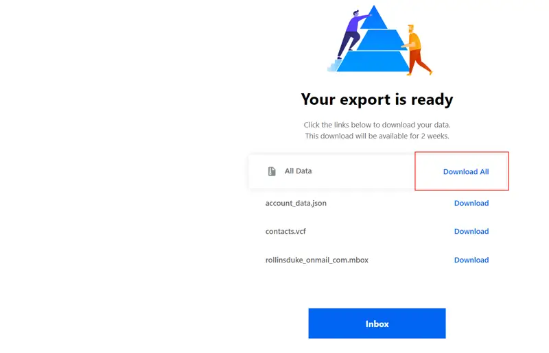 - 按下載全部按鈕導出所有 OnMail 帳戶數據。