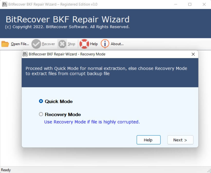 要修復此錯誤,您必須藉助專業工具的幫助,因為您無法通過手動解決方案修復此錯誤,並且可以修復此錯誤的工具的名稱是BitRecover BKF 修復工具。該軟件旨在修復任何類型的 BKF 文件錯誤。借助該軟件,您還可以提取BKF文件數據修復此“備份文件包含無法識別的數據且無法使用”錯誤後。這個工具非常用戶友好,即使是非技術用戶也可以很容易地使用它。