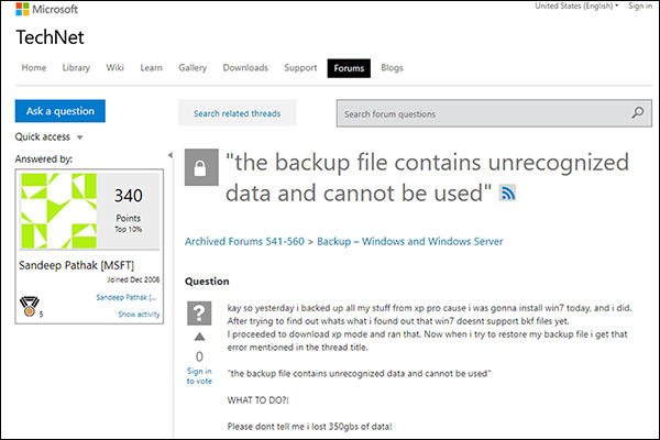 眾所周知,如果有數據備份,那麼數據丟失的機會就會非常小。早期用戶過去常常藉助內置工具以 BKF 格式創建數據備份NT備份實用程序在 Windows XP 系統上,當他們需要數據時,他們使用 NTBackup 實用程序來恢復數據。如果您的文件在這兩個步驟中損壞、感染病毒或出現任何其他問題,您將收到警告“備份文件包含無法識別的數據且無法使用”消息。
