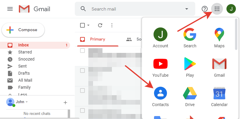 登錄您的 Gmail 帳戶並單擊 Google Apps 選項。現在,選擇聯繫人並單擊導入。