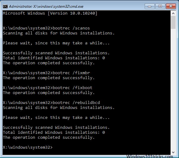 如果啟動修復後仍然出現相同的錯誤,那麼現在是時候查看 BCD (啟動配置數據)。如前所述,此錯誤 0xc000000e 背後的主要原因是 BCD(啟動配置數據)配置無效或損壞。讓我們按照以下步驟重建啟動配置文件。