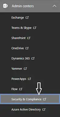 - 此後,選擇安全與合規性下的選項Exchange 管理中心。