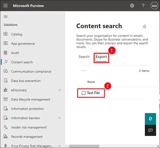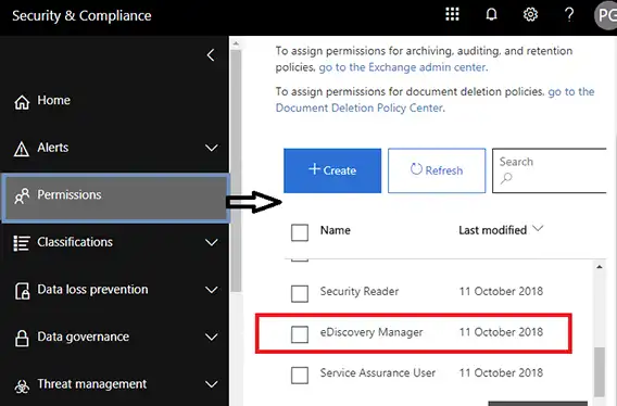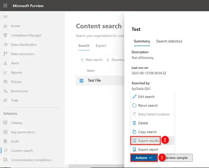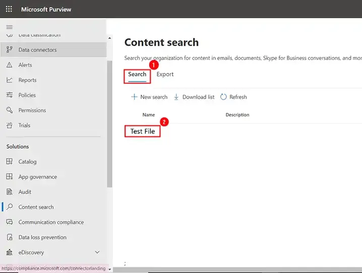 注意力:如果您看不到“內容搜索” 選項,然後確保您已成功設置所需的電子數據展示權限。此外,如果您對電子取證權限。最多可能需要 24 小時才能反映。