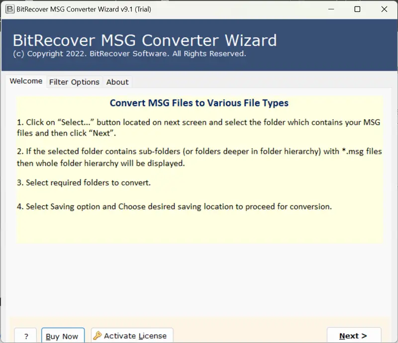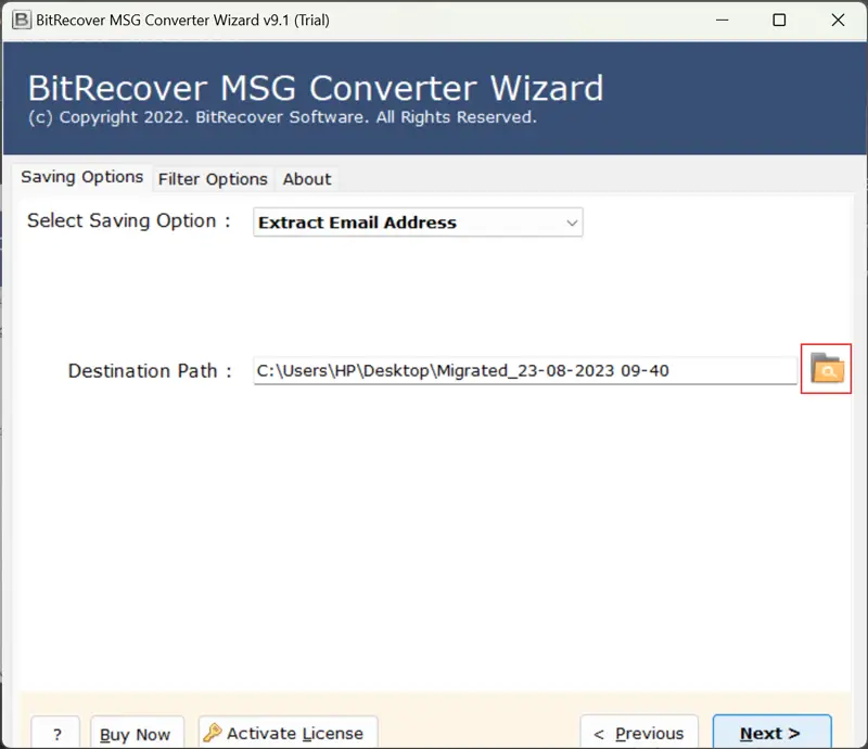 - 首先,下載、安裝、跑步這MSG 電子郵件地址提取器在您的機器上並閱讀工作指南。