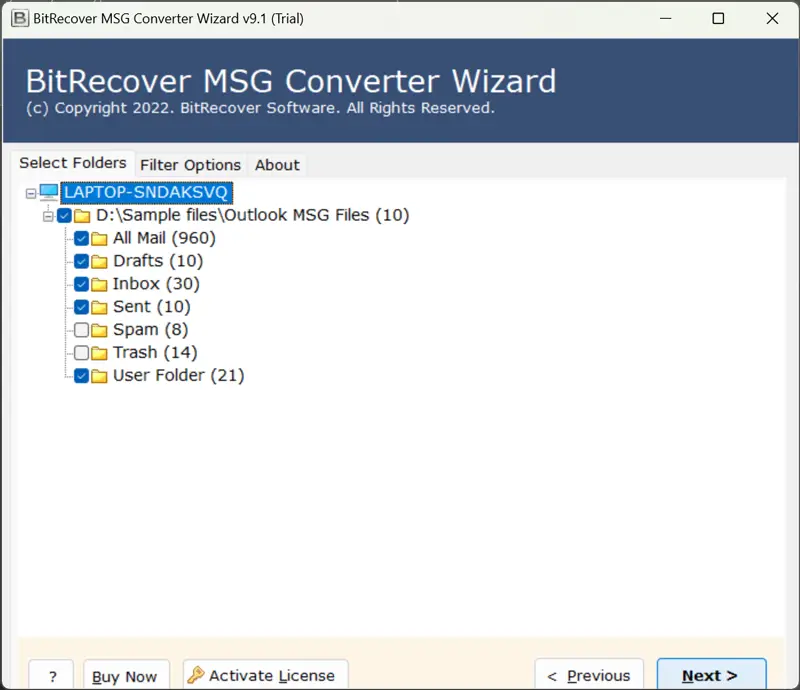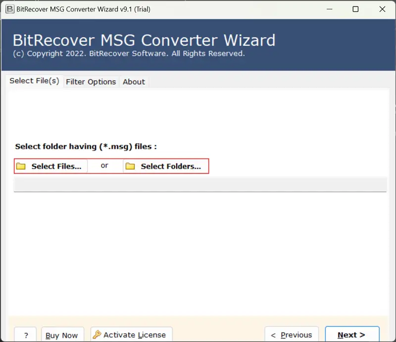 - 添加 MSG 文件或文件夾在軟件面板中使用選擇文件或選擇文件夾按鈕。
