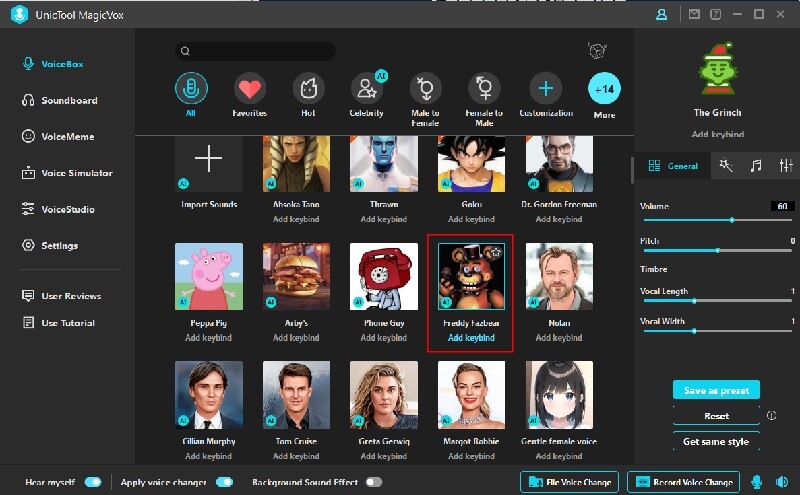 如果您正在尋找一種富有創意且有趣的方式來改變您的聲音並聽起來像 Glamrock Freddy 或其他最喜歡的名人,Voicemod 就是您的最佳選擇。使用該應用程序的簡單界面,您可以快速將自己的聲音轉換為別人的聲音。只需從主屏幕上的眾多角色中選擇一個,然後按播放即可!您可以添加迴聲、音高變換、加速-減速等效果。