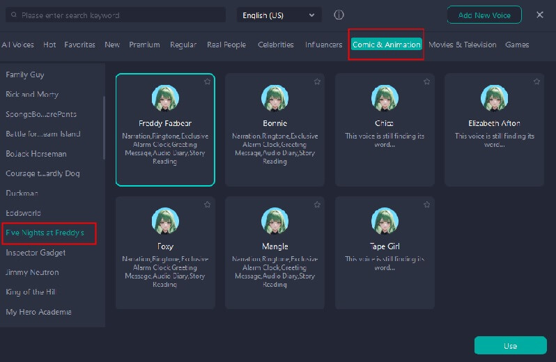 FNaF AI 語音:一系列以 FANF 角色為特色的語音,包括費斯熊弗萊迪、邦妮、奇卡等。