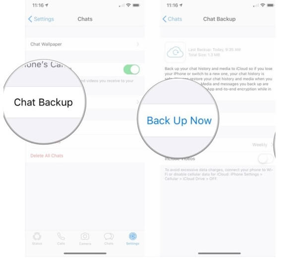 - 第 5 步:接下來,點擊立即備份。執行此操作將啟動備份並將 WhatsApp 數據從 iPhone 備份到 iCloud。