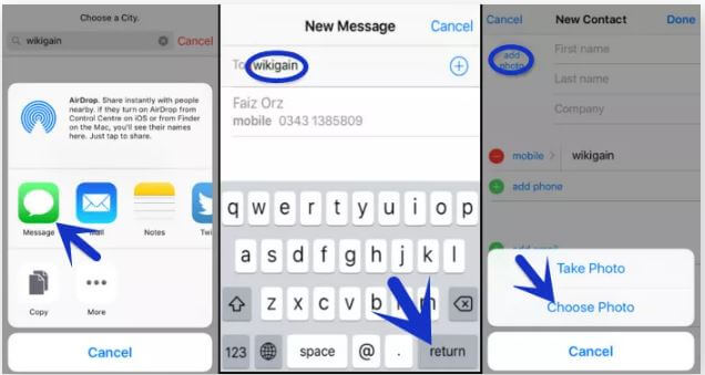 - 第 4 步:您現在將獲得多個用於共享突出顯示文本的選項。選擇消息選項。在“收件人”區域中輸入您想要的任何內容,然後按“返回”鍵。