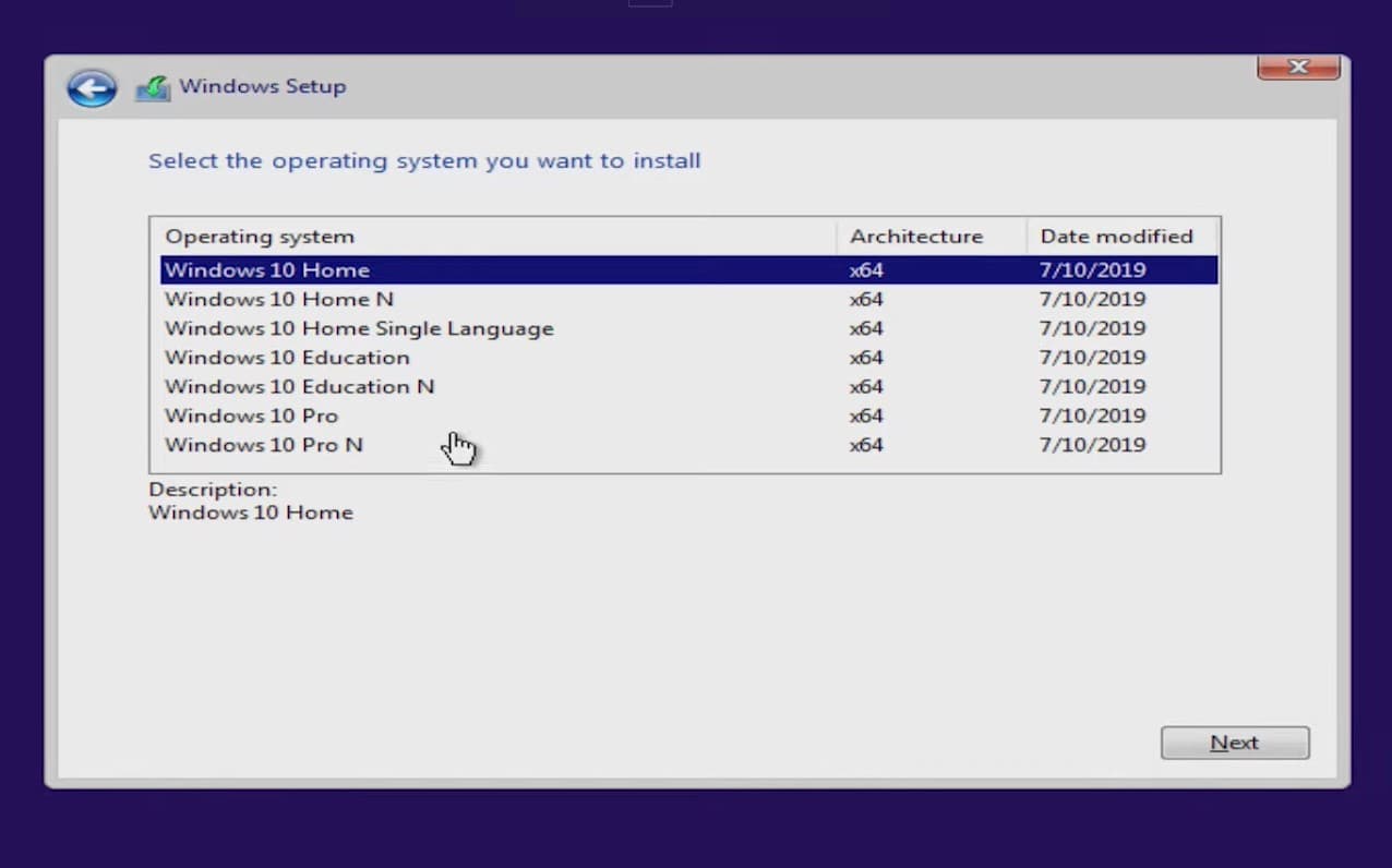 - 接下來選擇Windows 10的版本,這裡確保選擇您的產品密鑰激活的版本。