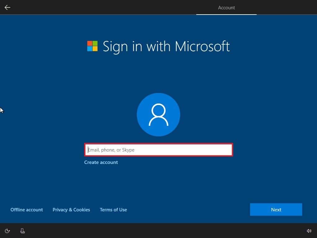 - 接下來,輸入您的 Microsoft 帳戶信息來創建帳戶,還有“離線帳戶”選項來創建本地用戶帳戶。