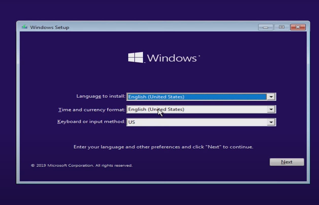 - 選擇要安裝的語言、時間和貨幣格式以及鍵盤或輸入法,然後單擊“下一步”。