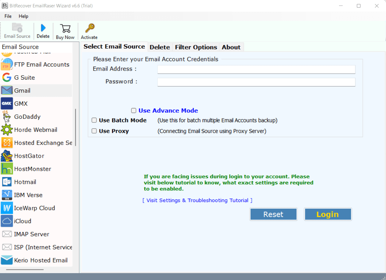 為了克服這些問題,清理雅虎郵件帳戶的最佳方法是使用專業的雅虎郵件清理工具,即BitRecover EmailRaser 嚮導。它是批量刪除不需要的電子郵件,同時確保您的雅虎帳戶安全和維護的完美解決方案。這是一個強大的工具,支持簡單的界面,使用戶能夠輕鬆管理和清理雅虎郵箱,而無需花費數小時進行手動刪除。