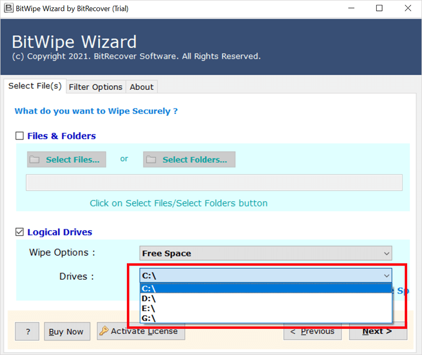 3. 選擇文件或 選擇您要擦除的文件夾,然後選擇邏輯驅動器