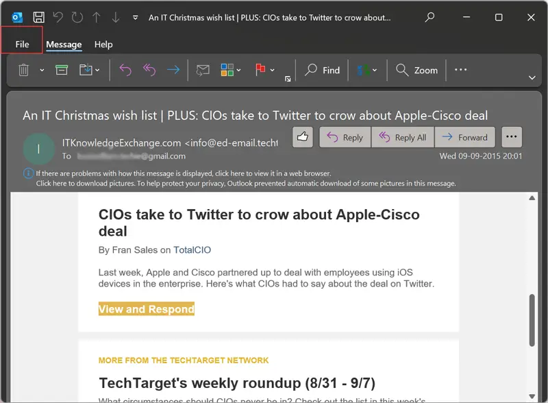 #1:使用 MS Outlook 手動將 EML 文件轉換為 HTML 文件格式