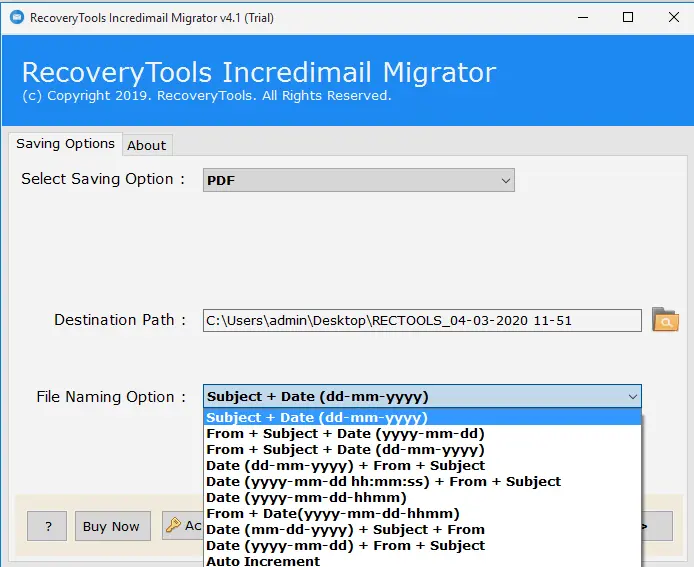該軟件沒有此類文件大小限制。您可以將無限的 IncrediMail 電子郵件轉換並保存為 PDF 格式。