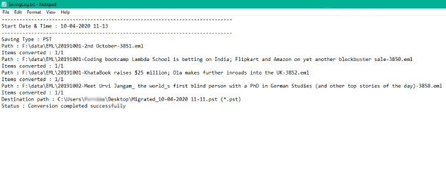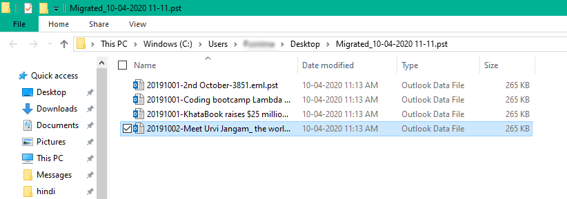因此,該軟件現在將打開結果文件夾包含您的 Kerio 郵件到 Outlook 轉換後的文件。