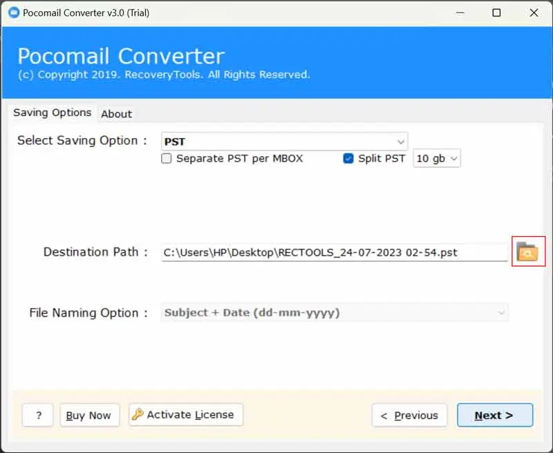 - 具體瀏覽目的地位置存儲 EML 文件。